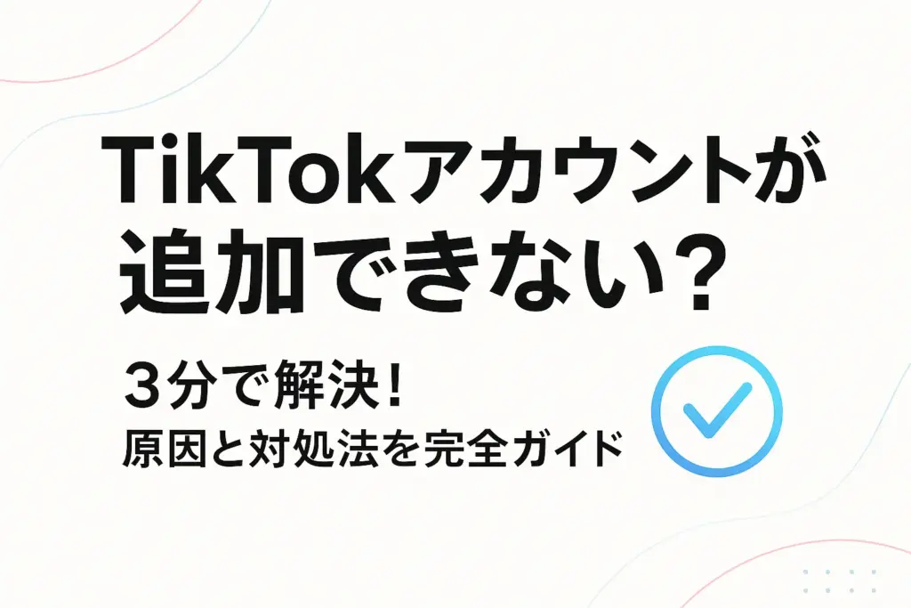 TkTokのアカウントが追加できない… TkTokのアカウントが追加できない原因はバグ? 「TikTokのアカウントが追加できない」という問題に直面していませんか? 本記事では、「TikTokのアカウント追加ができない原因と解決法」について詳しく解説していきます。... -