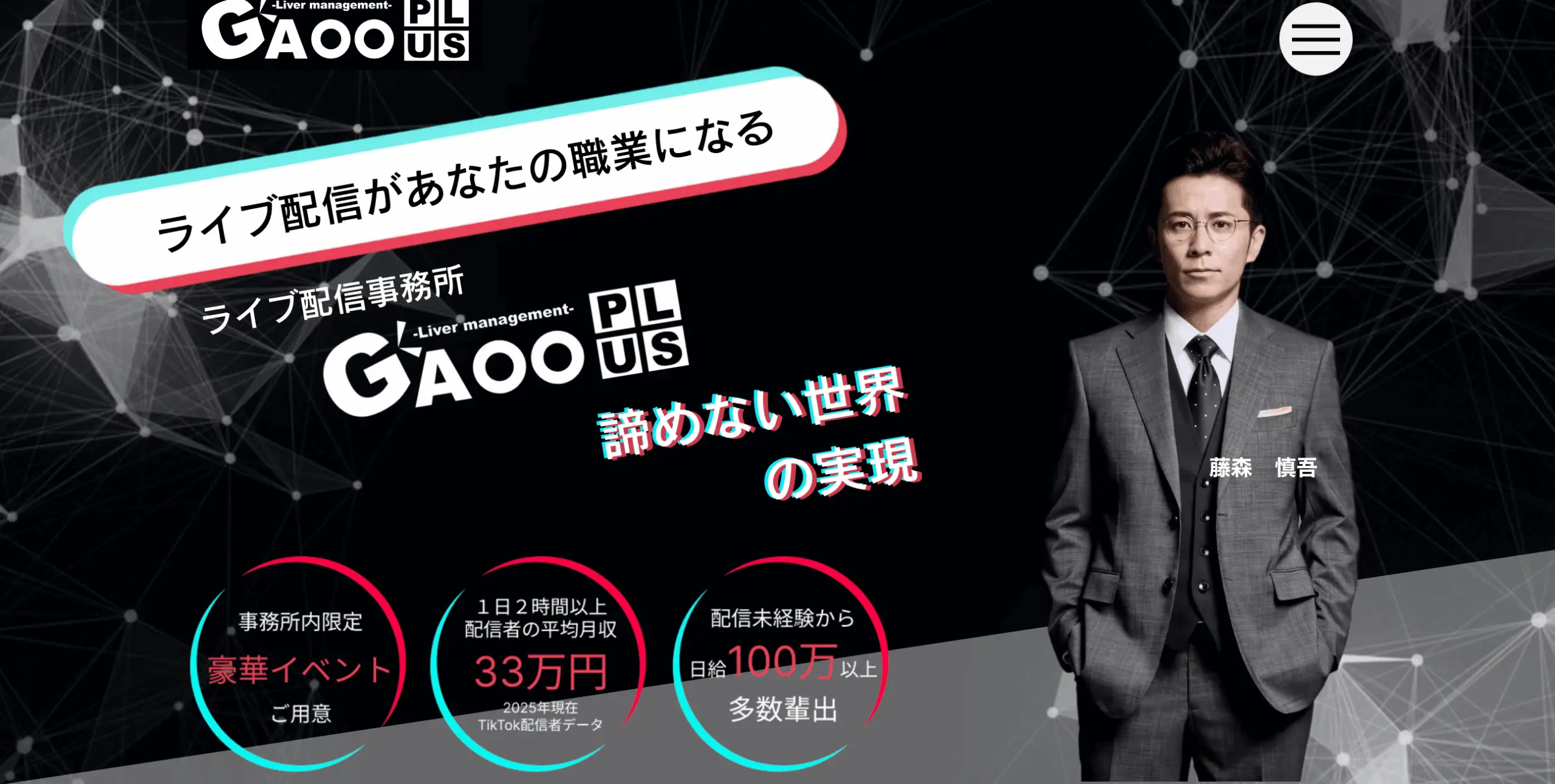 芸人の藤森慎吾さんがアンバサダーを務めるGAOOPLUSは、西日本最大級の大手ライバー事務所です。