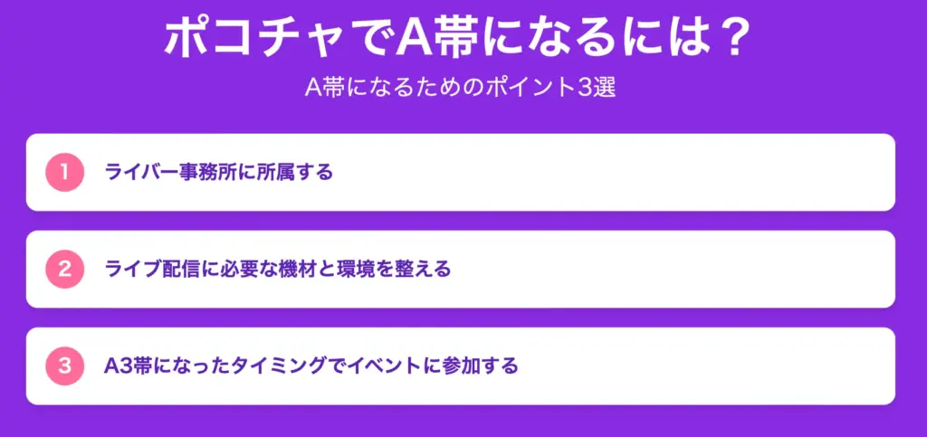ポコチャのA帯は、ライバーとして本格的な収入を得られる最初のランク帯です。