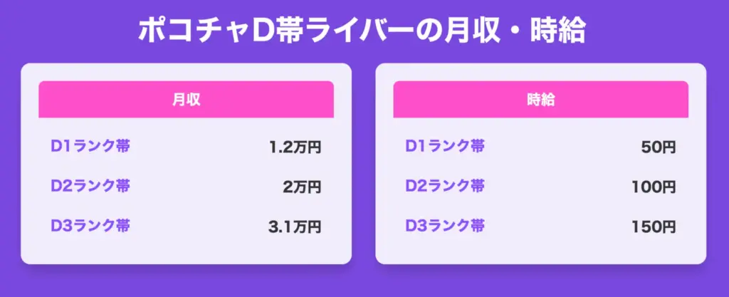 本記事では、「ポコチャのD帯の月収と時給」について徹底解説していきます。