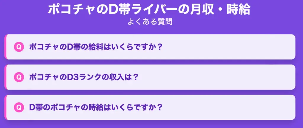 ここでは、ポコチャのD帯ライバーの月収・時給に関するよくある質問に回答していきます。