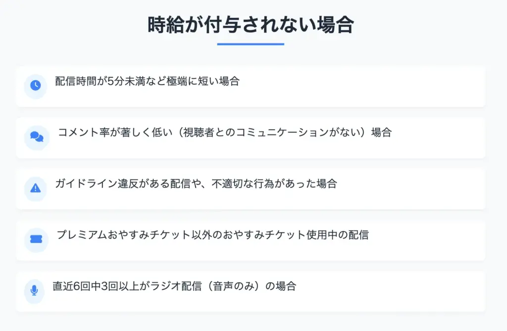 基本的にルールを守った配信であれば時給をもらうことができます。