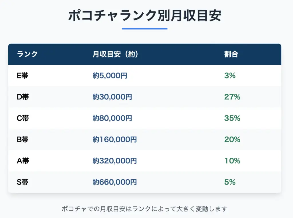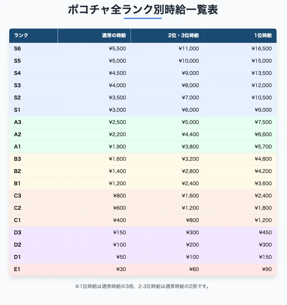 ポコチャは、ランクが上がるほど時給が高く設定されます。