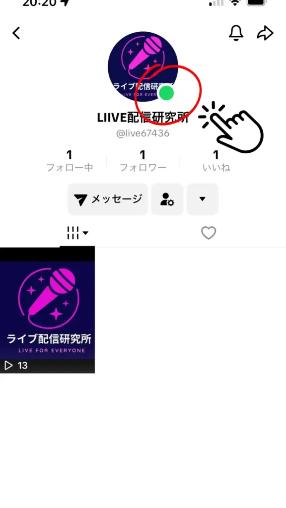 現在ログイン中の場合は、プロフィール画像の右下に緑色の丸い点として表示されます。
