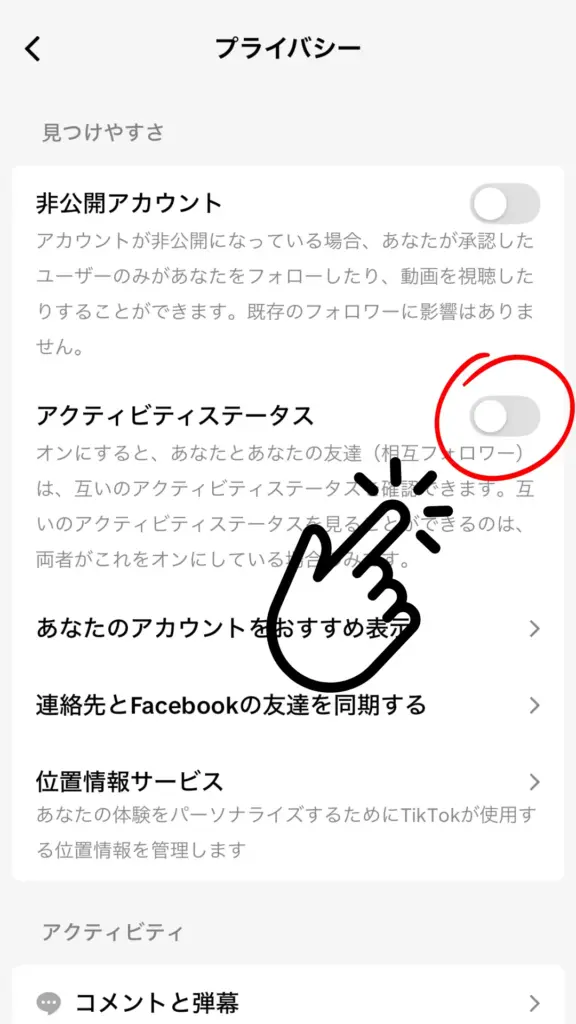 TikTokのアクティビティステータスの設定方法は?