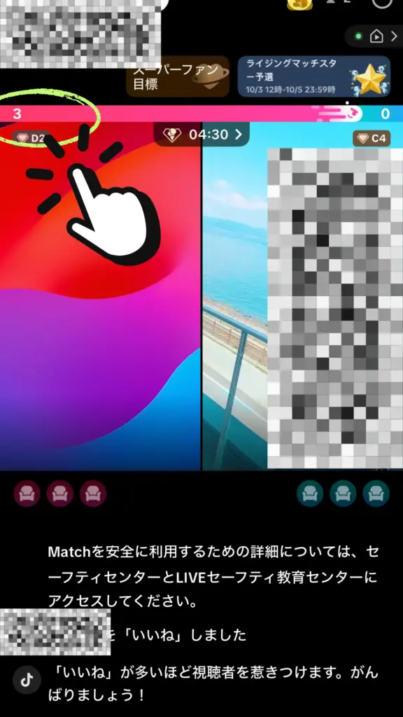 TikTokバトル中にいいねを押したら、対戦相手にバレます