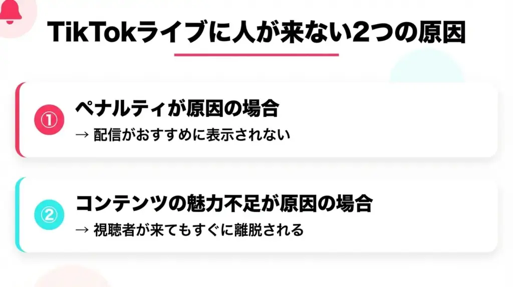 ここでは、TikTokライブに人が来ない2つの原因を解説します。