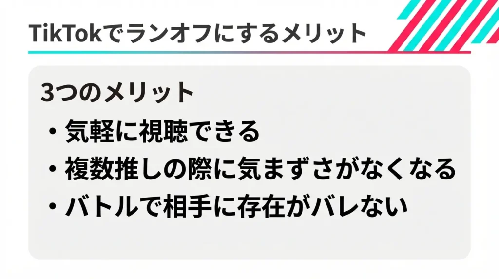 自分の視聴スタイルや目的に応じてランオフ機能を使い分けることで、TikTokライブをより楽しむことができるます。