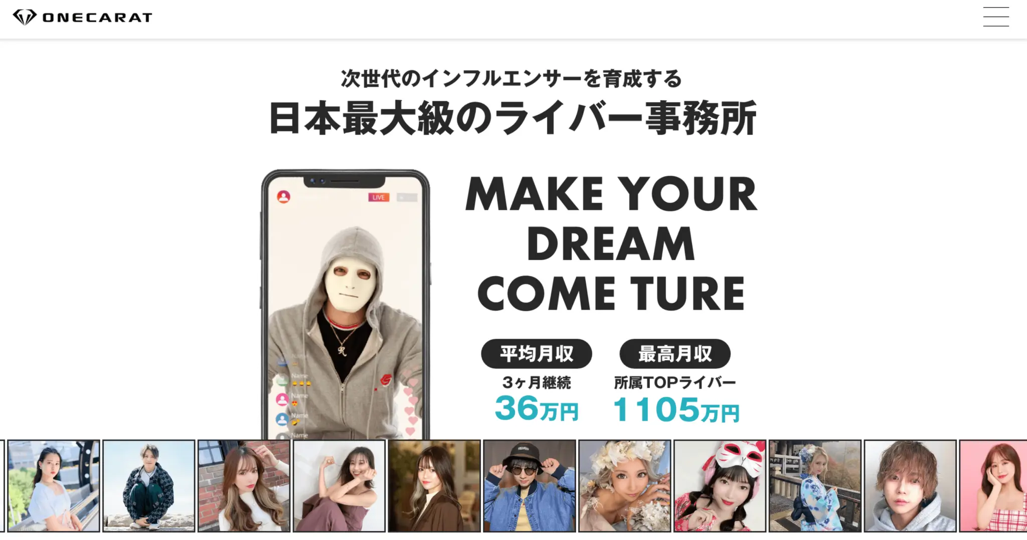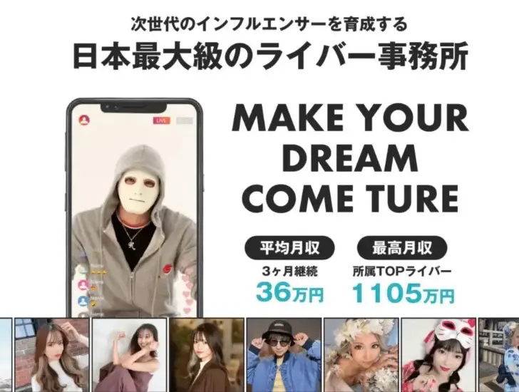 各種ライブ配信アプリで圧倒的な実績を誇る事務所です。