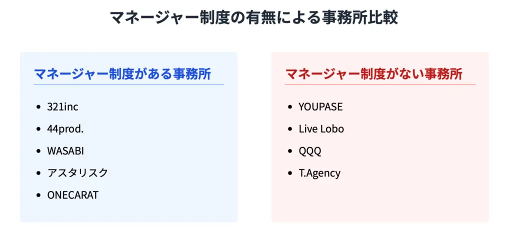 | マネージャー制度 | あり(全員女性) | あり | あり(現トップライバー) | あり | あり |