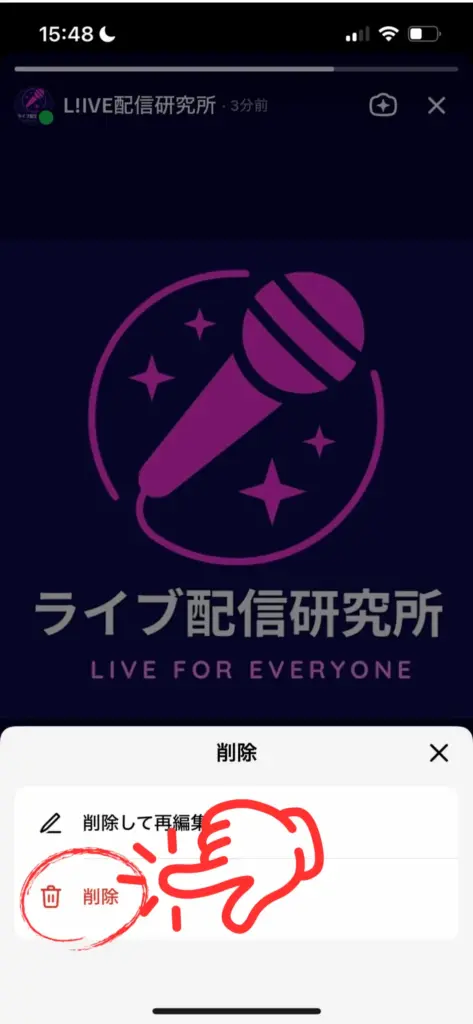 削除処理は数秒以内で完了し、ストーリーは他のユーザーから見えなくなります。