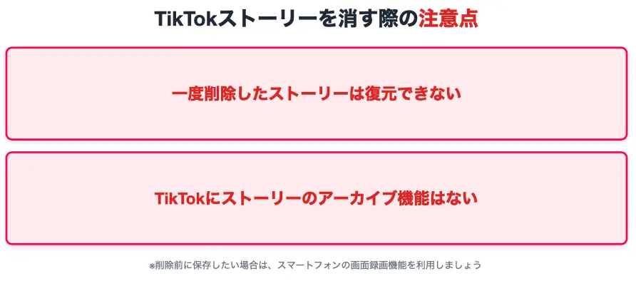 TikTokストーリーを削除する前に、知っておくべき注意点があります。