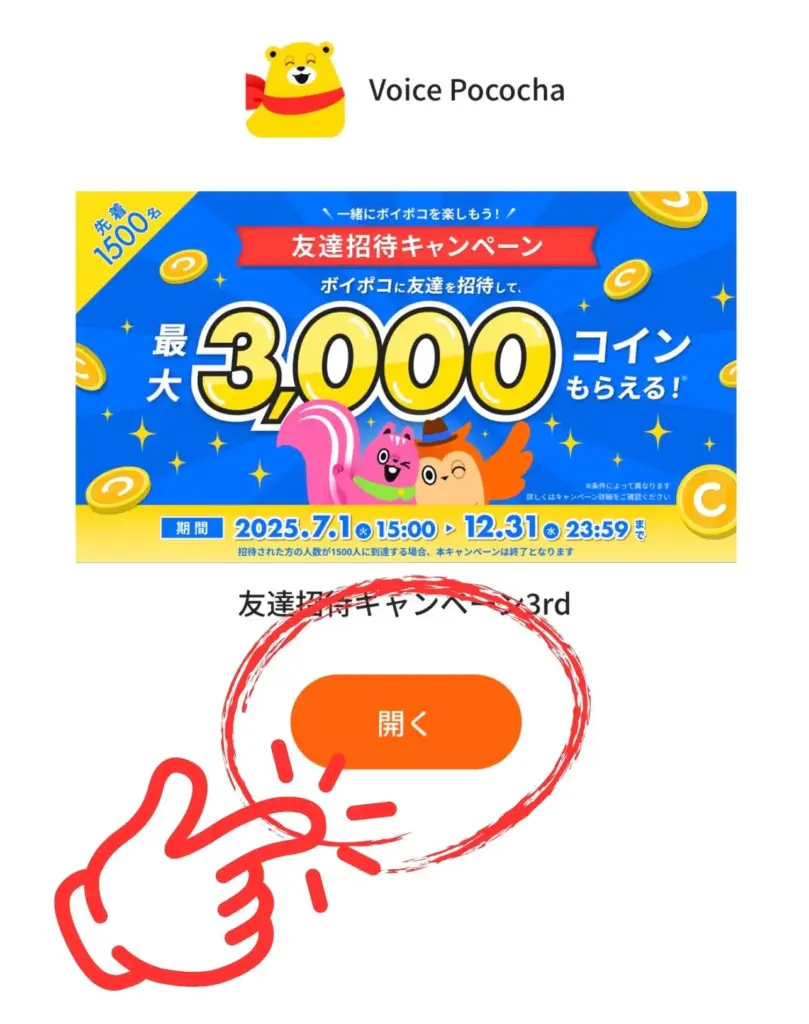 ボイスポコチャの友達招待キャンペーンは、初心者にとって絶好のスタートダッシュ手段です。
