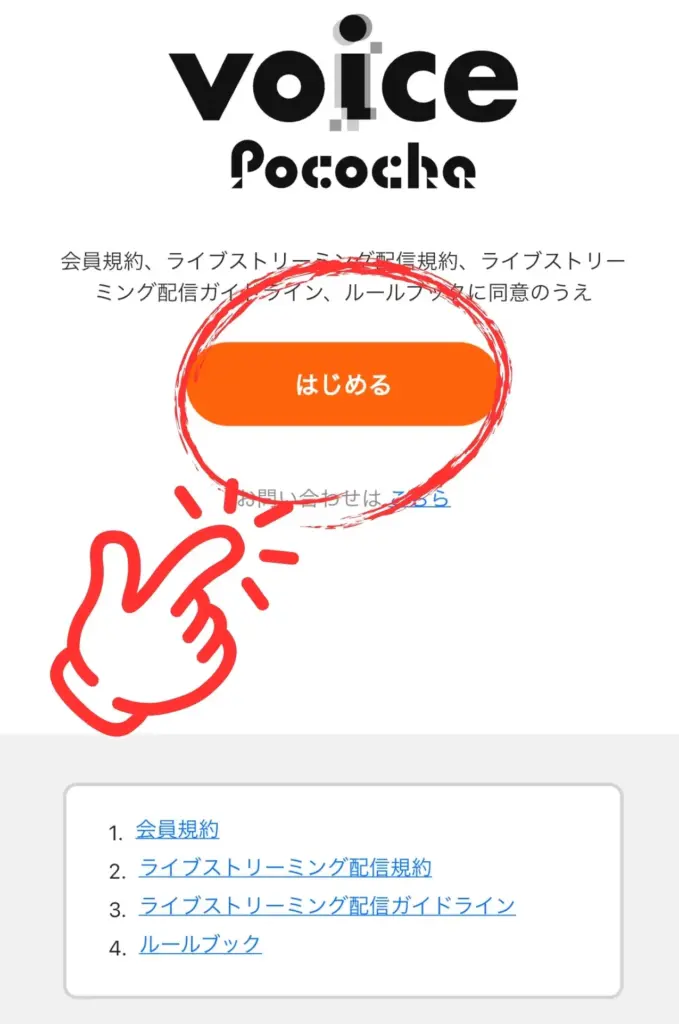 次に、以下の画面に移るので、「はじめる」をタップしてください。