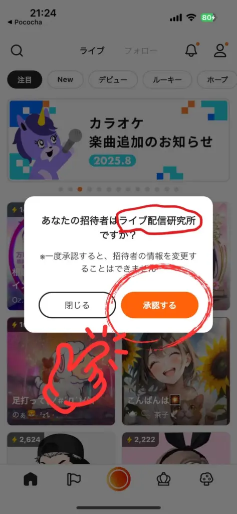 次に、招待者を確認して問題がなければ「承認する」をタップしてください。