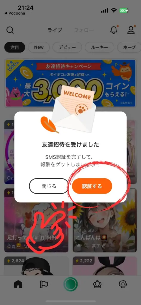 ボイスポコチャの友達招待キャンペーンの利用方法