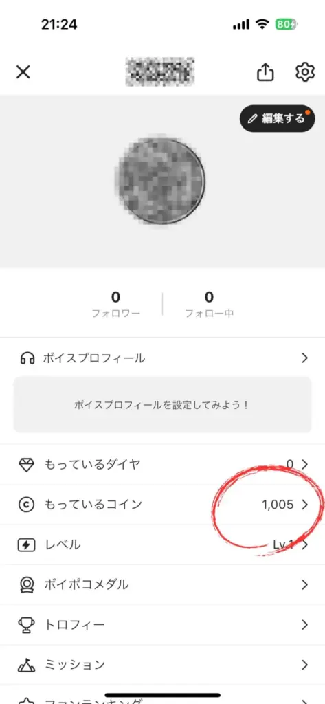 「もっているコイン」の欄に1,000コインが追加されていれば完了です!